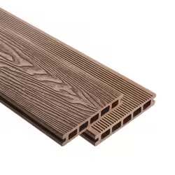 The Ambi-Deck Verde range features a dual-sided design: a realistic woodgrain finish on one side and a classic timber groove on the reverse—offering design flexibility for any outdoor space.
